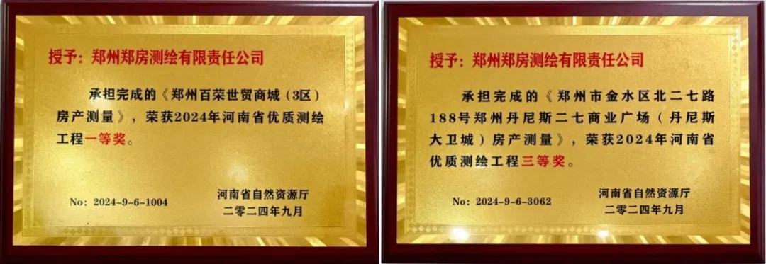 近日,河南省自然資源廳發(fā)布2024年“河南省優(yōu)質(zhì)測繪工程獎(jiǎng)”評選結(jié)果,其中,鄭州鄭房測繪有限責(zé)任公司獲得“河南省優(yōu)質(zhì)測繪工程獎(jiǎng)”一等獎(jiǎng)1項(xiàng)、三等獎(jiǎng)1項(xiàng)。